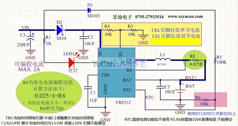 YB5212A高輸入耐壓2A單節(jié)/雙節(jié)鋰電池充電芯片